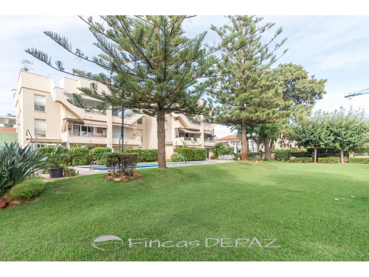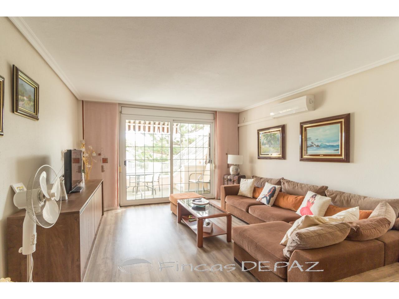 Precioso apartamento situado en el barrio de Lluminetes en ubicación tranquila a un paso de la playa caminando y cerca de todos los servicios. Edificio de solo 12 vecinos con precioso jardín comunitario con piscina y pista de frontón/juegos. 80 m2 de vivienda con terraza superior de 80 m2 de uso privado con acceso desde la misma propiedad. La vivienda se distribuye en salón comedor con salida a terraza, cocina independiente con salida a lavadero, tres dormitorios y dos baños ( uno en suite). En la planta superior dispone de una espectacular terraza de 80 m2 de uso privado y con acceso desde la misma vivienda. Complementa la propiedad una plaza de parking doble. No dude en solicitar información.
