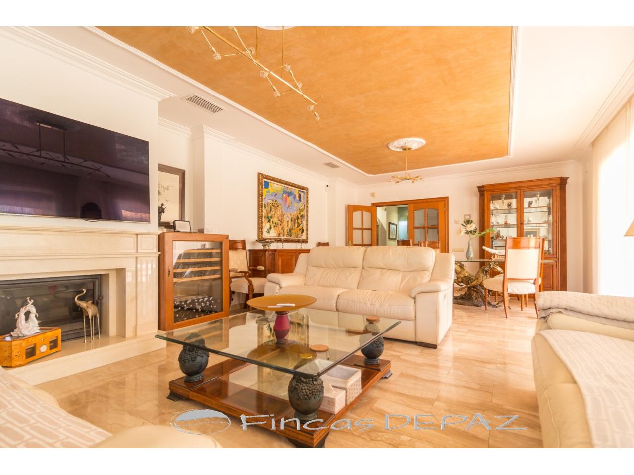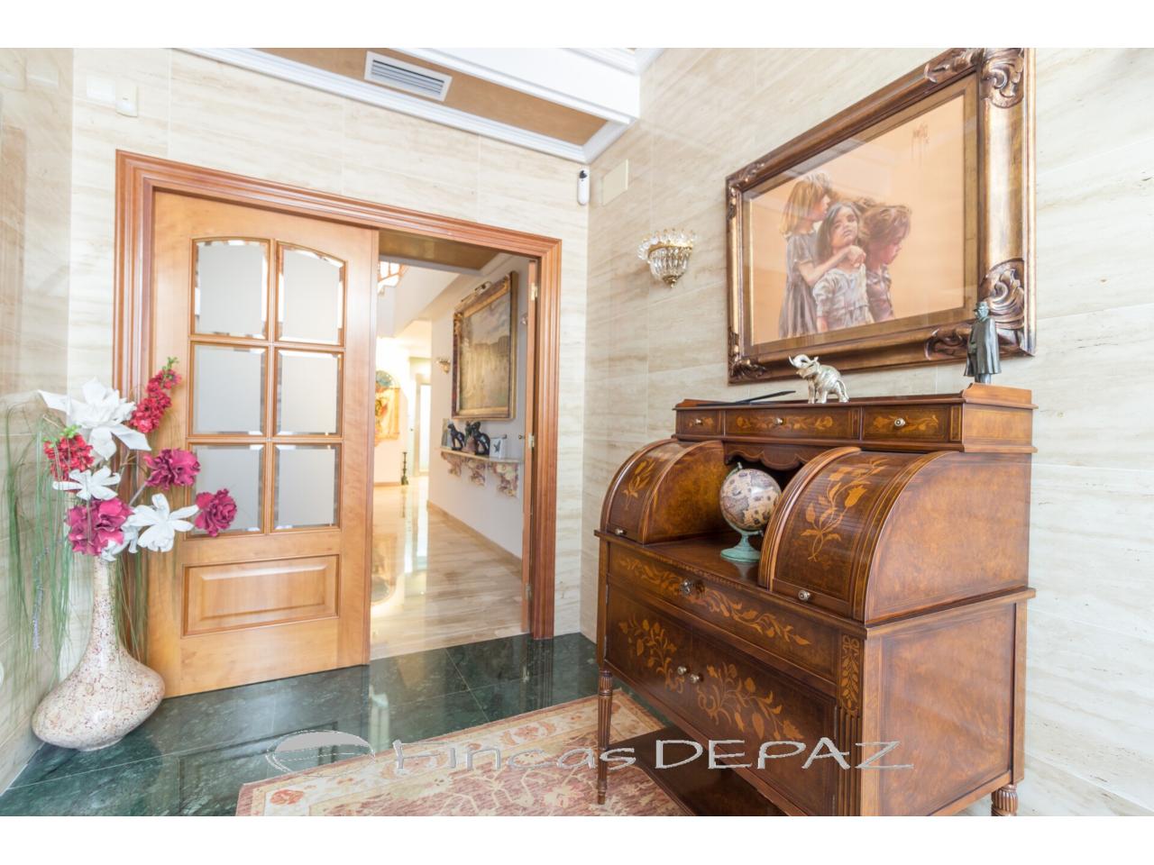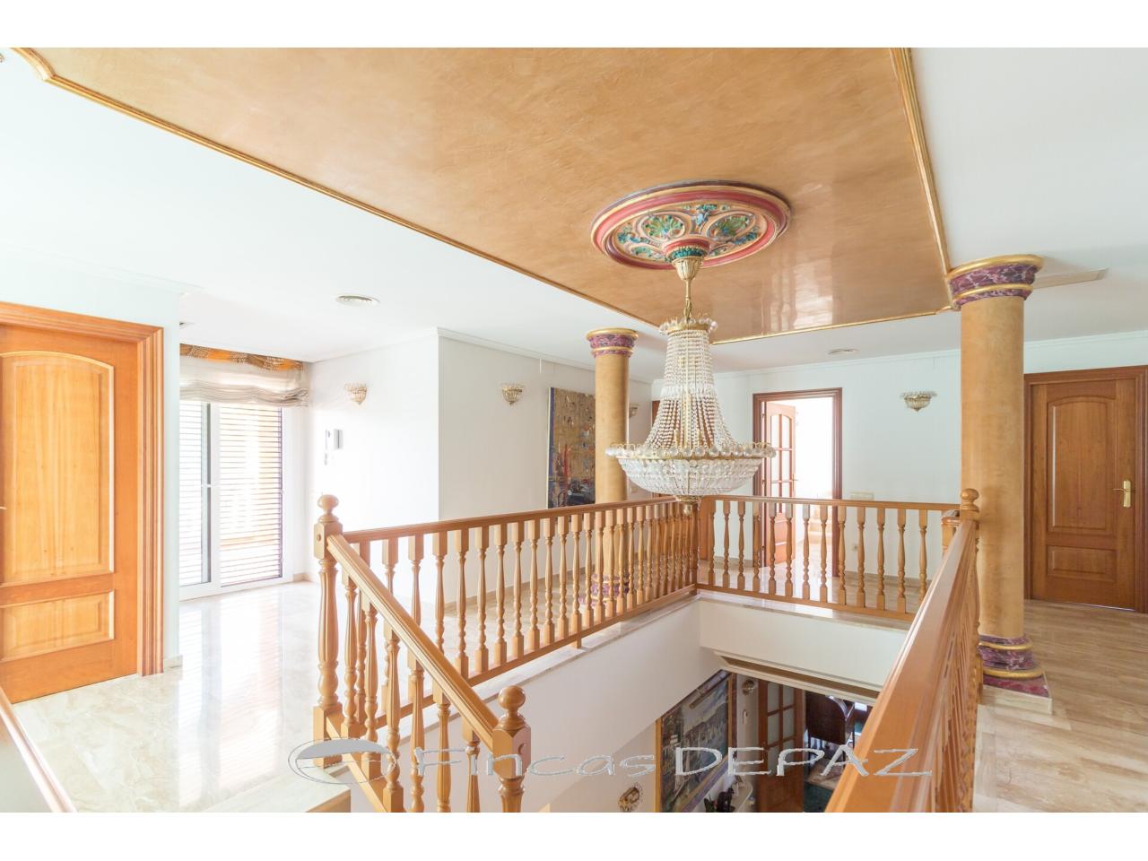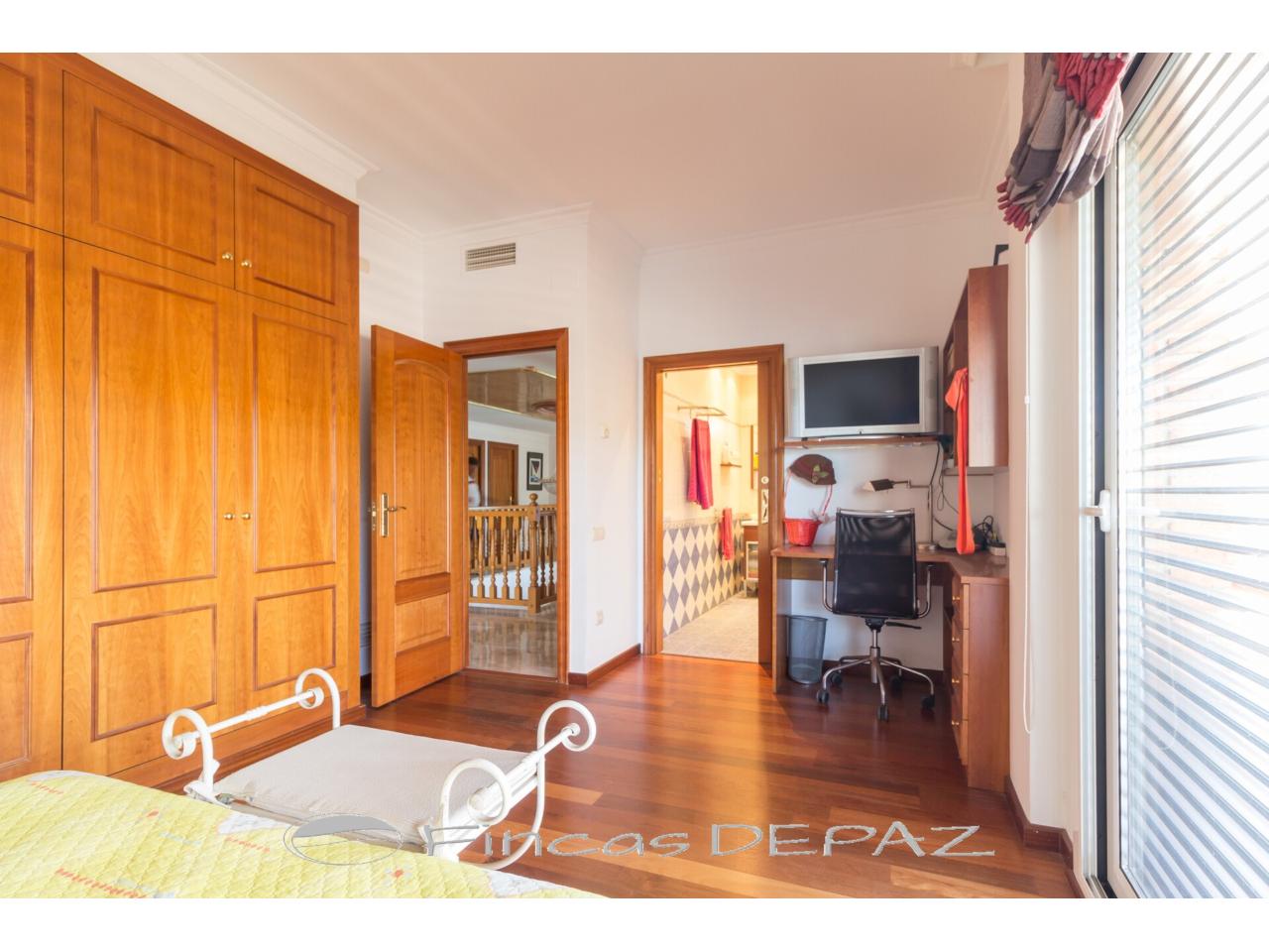 En planta superior disponemos de cuatro dormitorios dobles, tres baños ( dos en suite), una quinta estancia habilitada como cuarto de plancha y una gran terraza con vistas.