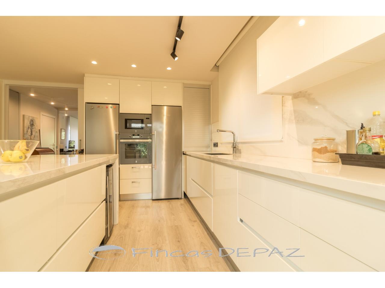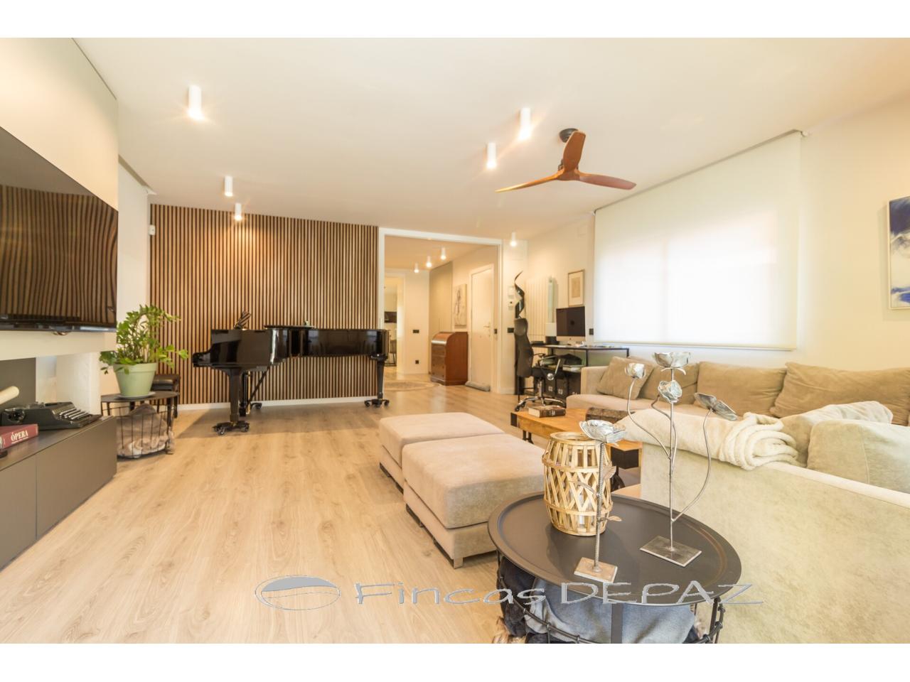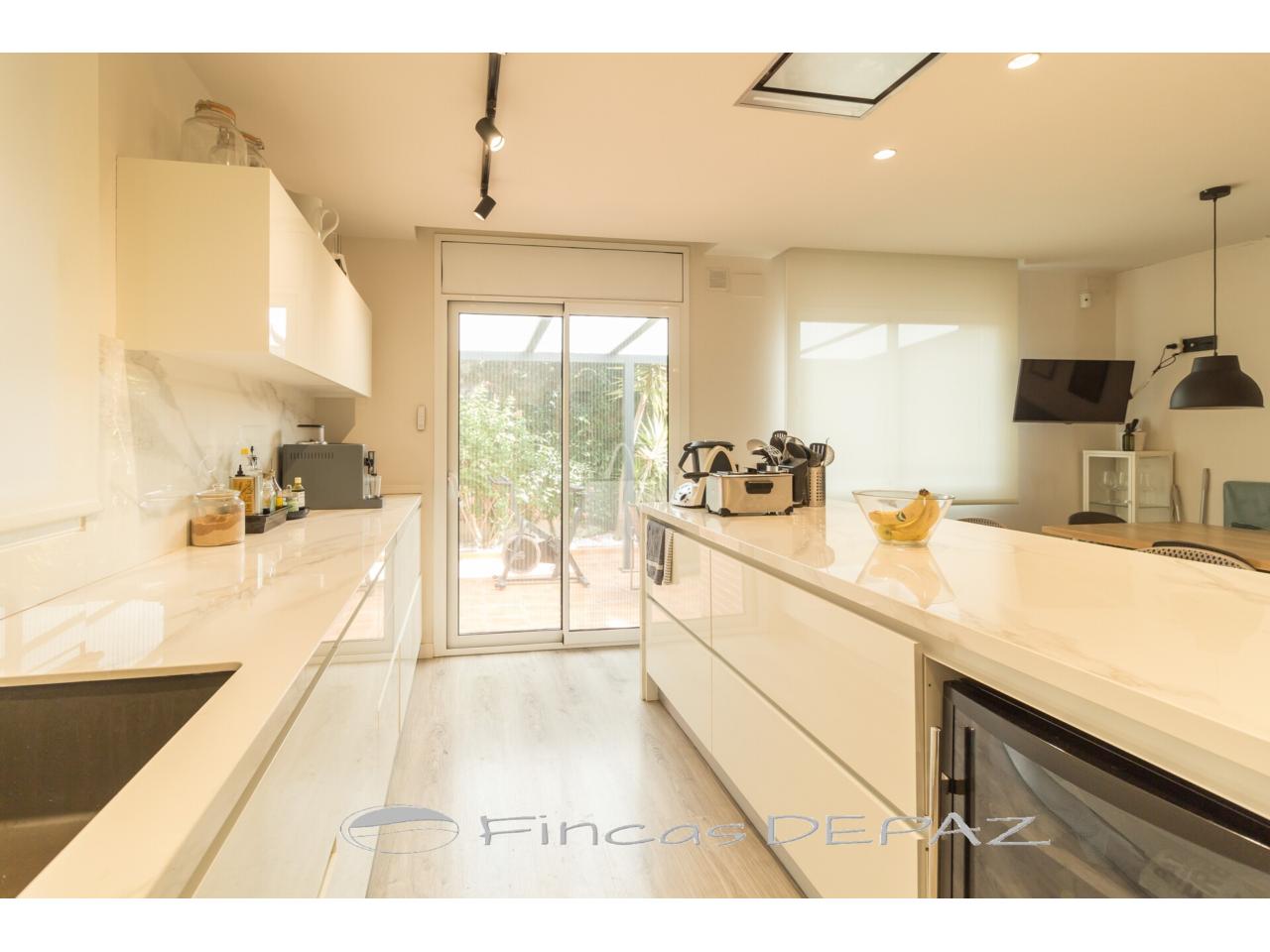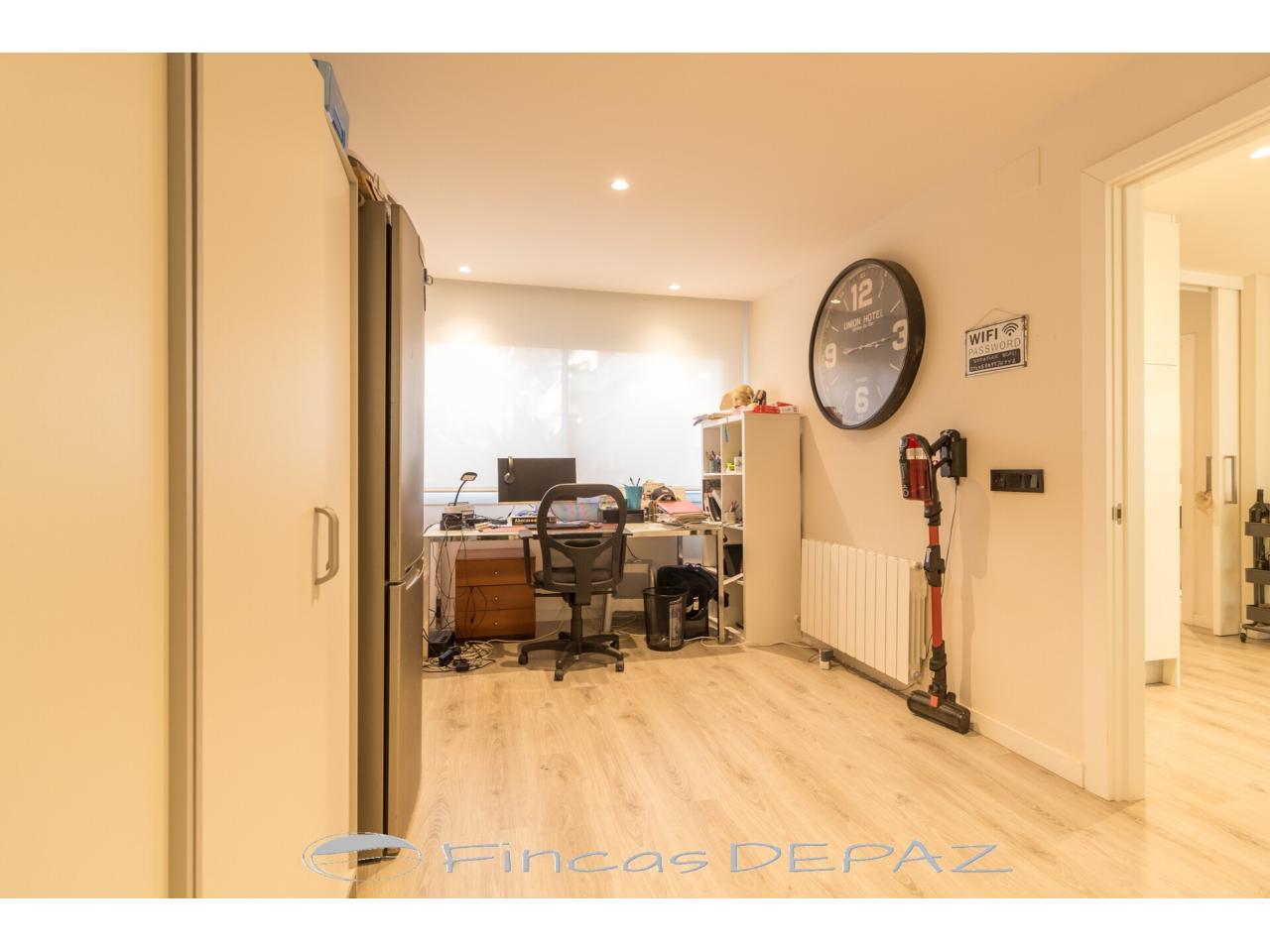 En planta principal disponemos de un amplio salón comedor con grandes ventanales y salida directa a jardín, preciosa cocina de diseño y excelentes acabados (comunicada a salón y con salida directa a jardín/terraza), una estancia amplia diáfana con uso polivalente ( actualmente con uso de oficina), y un aseo de cortesía.