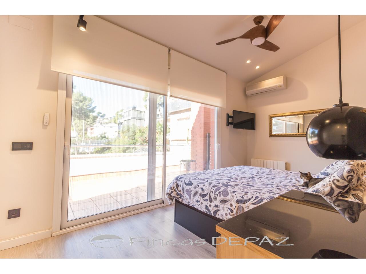 En planta buhardilla habilitada gran habitación con espacioso vestidor (tipo master suite),con salida a terraza-solárium y precioso baño con techos abuhardillados, bañera y ducha.