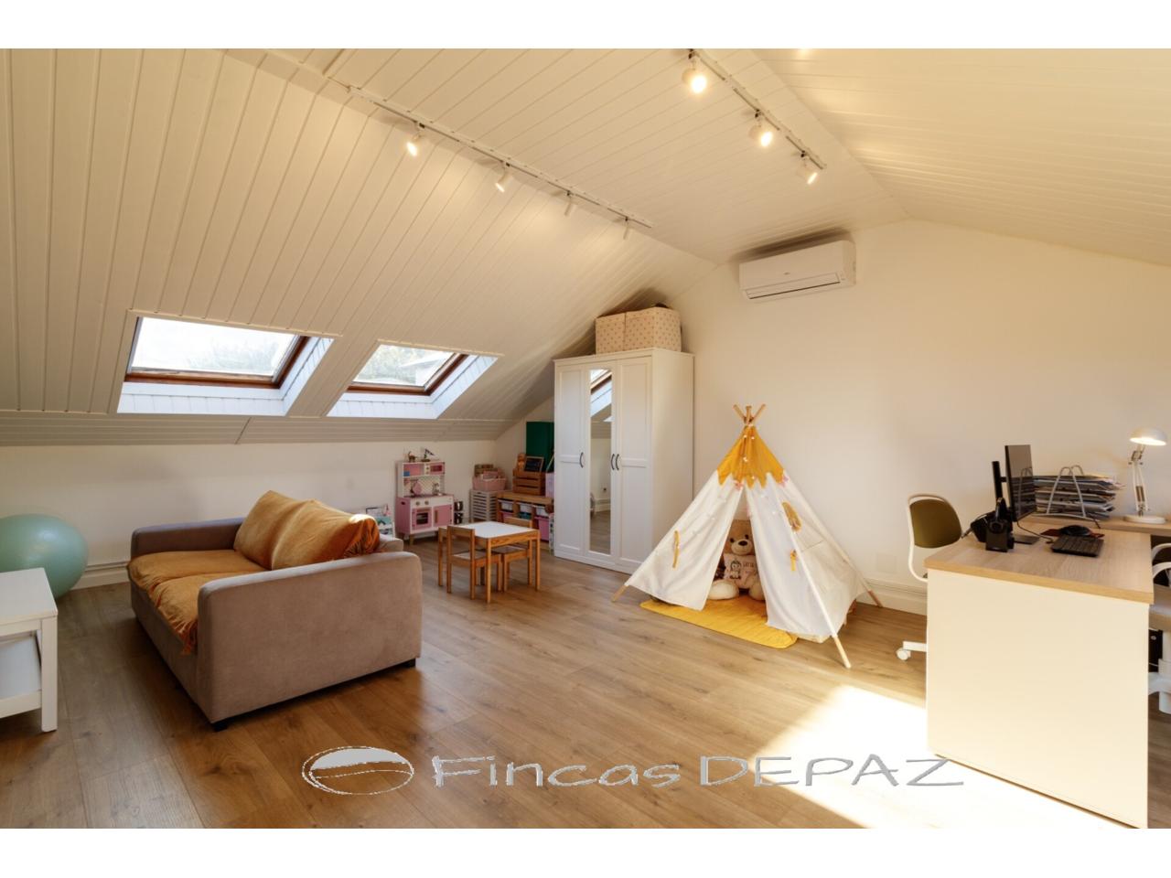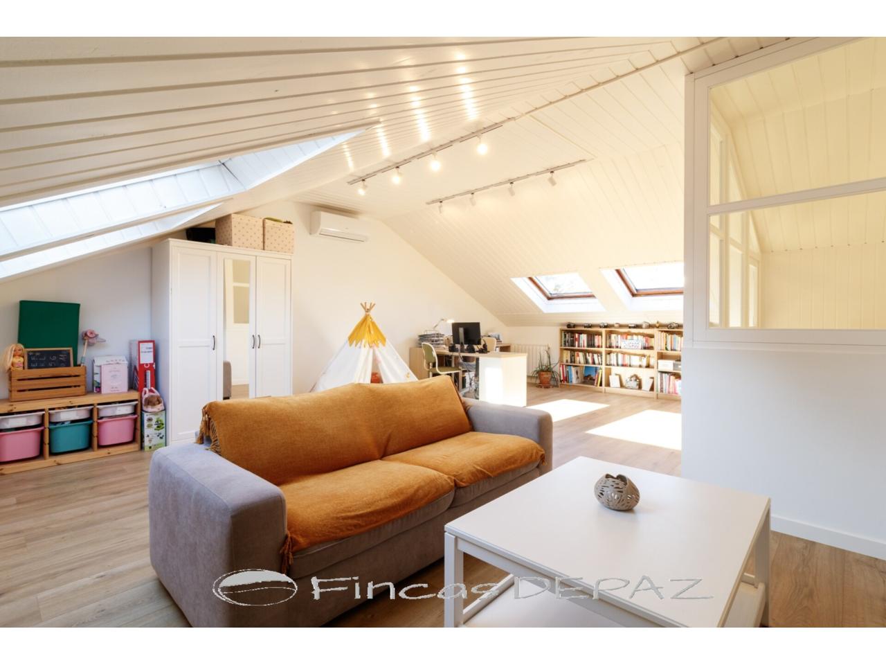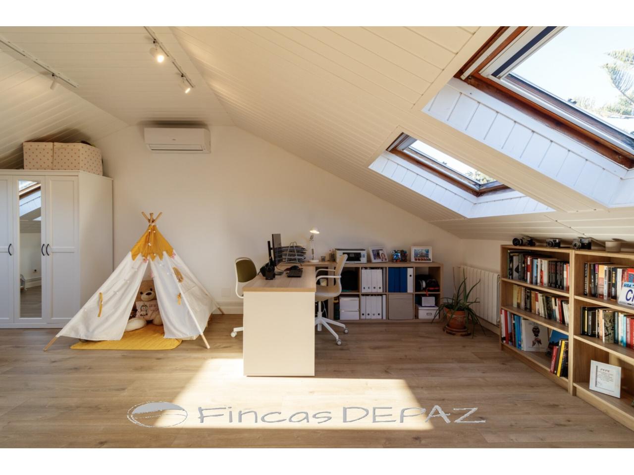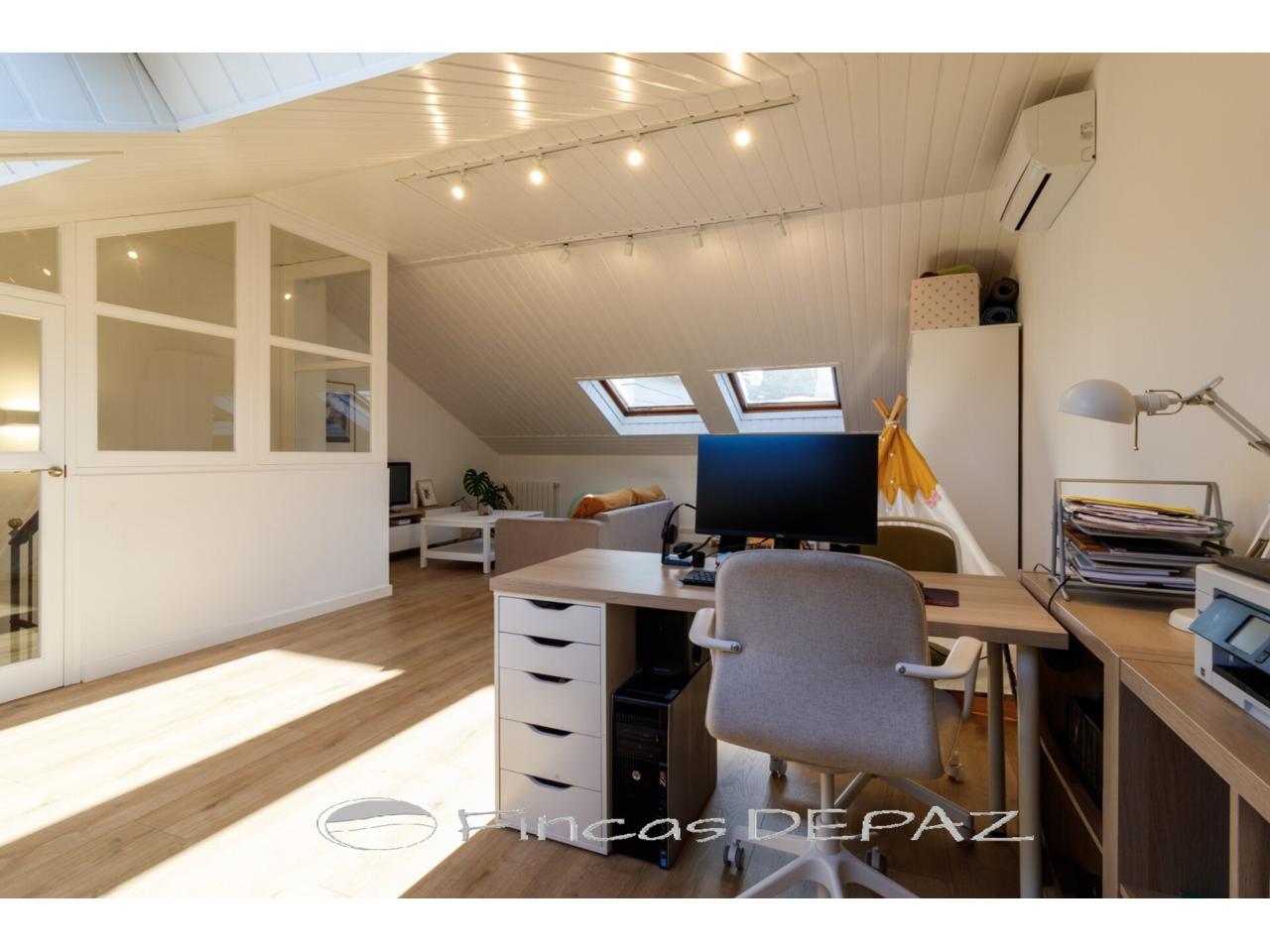 La planta superior, es una amplia buhardilla diáfana, actualmente usada como espacio polivalente despacho/zona de juegos/zona de estar.
