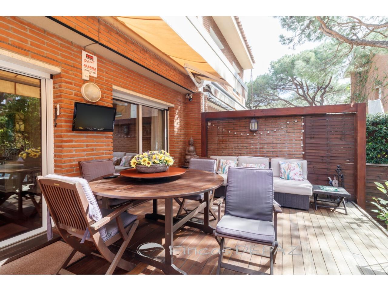 En el exterior disponemos de un jardín de bienvenida en la zona de entrada y de una preciosa terraza/jardín con salida desde el salón y con acceso desde el mismo a la zona comunitaria, que consta de amplios espacios con césped y árboles y una preciosa piscina dónde refrescarse los días calurosos de verano.